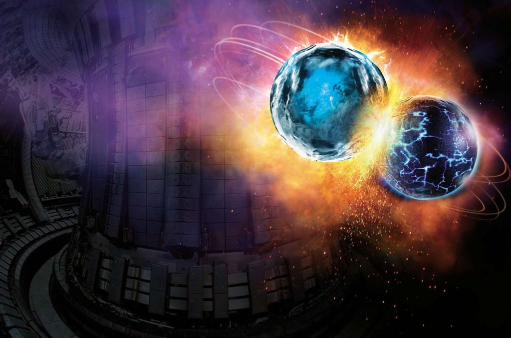 በ fusion reacter ውስጥ ሁለት የአትሞች ኑኩላይ ለመጣመር ሲጋጩ